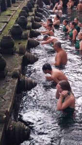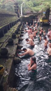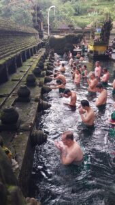 Next, we will go to the Temple of Tirta Empul (Temple of Sacred Water) – This is one of the most revered Balinese temples. According to legend, this temple was built in the 10th century around a sacred spring that was created by the warrior god Indra. To this day, the water from the temple’s sources is considered sacred, healing, **living** water. On the territory of the Tirta Empul temple there is a large pool of stone, which is filled with water from the holy spring through eleven fountains. Those who wish can bathe in the healing will!