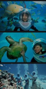 A walk on the ocean in special helmets, in which oxygen is supplied, is popularly called **a walk in saucepans**. This excursion to Bali is an ideal option for exploring the ocean for both adults and children, you do not need to know how to swim and dive, hold your breath, you can keep your contact lenses on – the water gets through a special helmet. You will be able to breathe fully underwater, which will make your walk easy and enjoyable. The dive lasts up to 45 minutes accompanied by an experienced instructor.